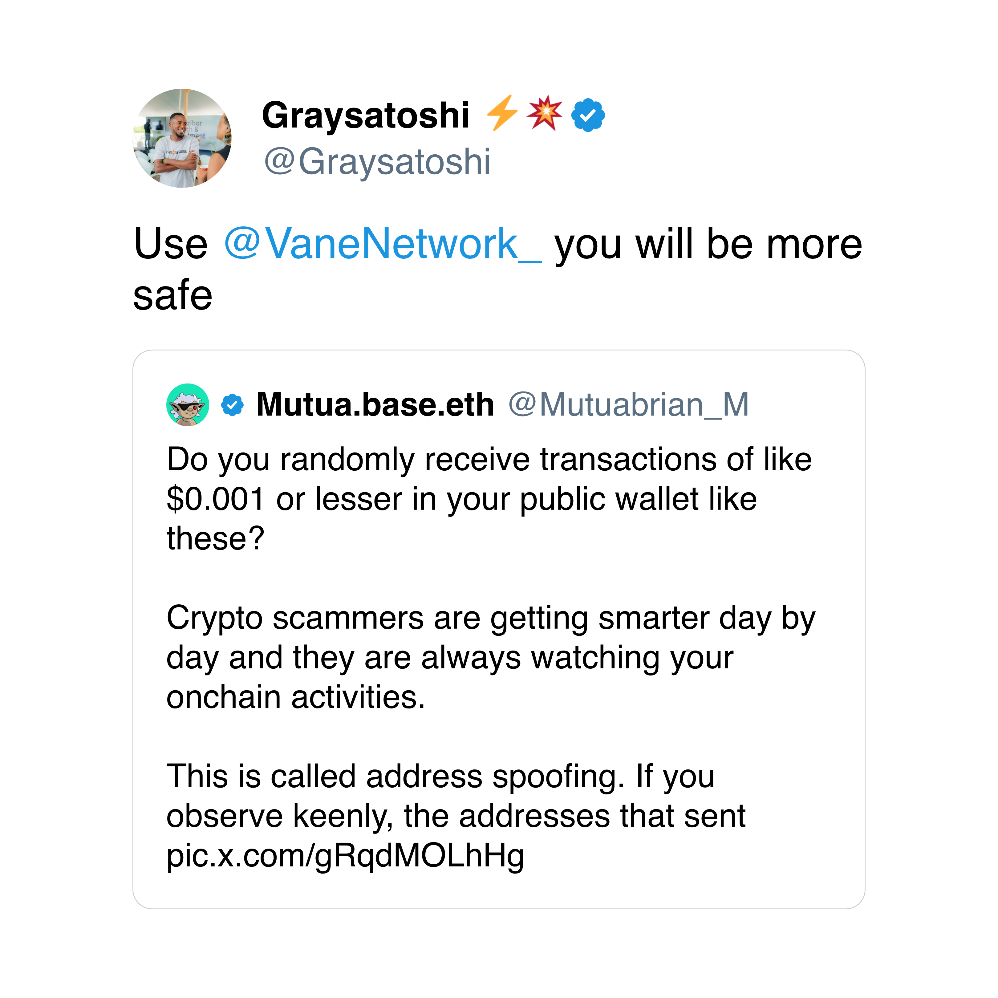 Vane enables secure sender–receiver interaction, with receiver-side confirmation and transaction reversion. Transfer with peace of mind, knowing any mistake is reversible.